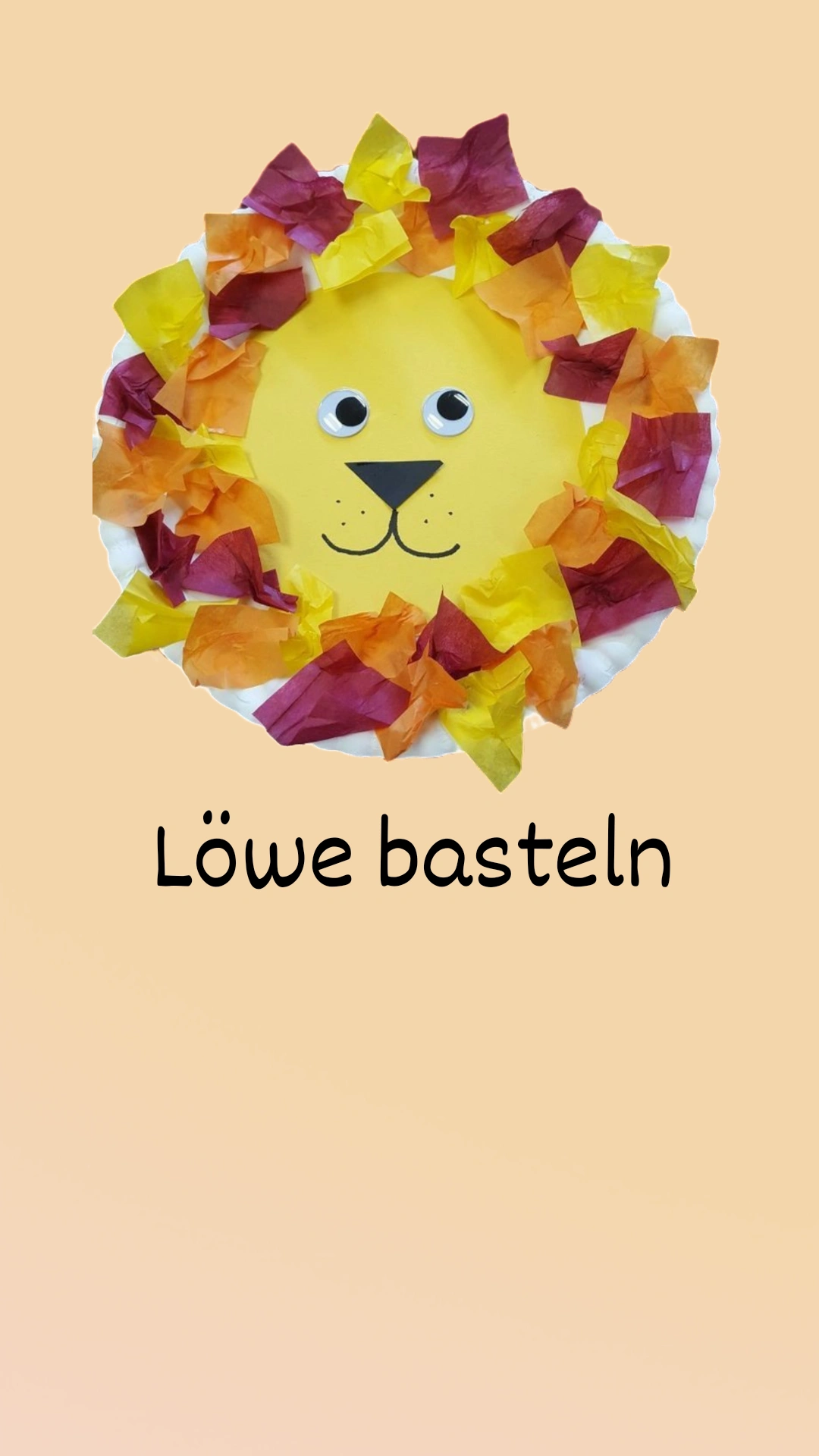 This lion has a somewhat rougher mane, which is a little more colorful: colorful pieces of paper in yellow, orange and brown are glued to the face, which is again cut out of cardboard.