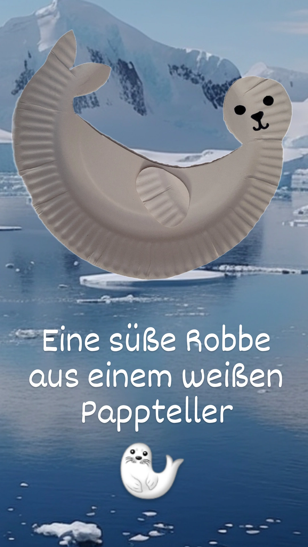 Eine Bastelarbeit ohne großen Material- oder Vorbereitungsaufwand. Man benötigt nur einen weißen Pappteller für jedes Kind sowie einen schwarzen Filzstift. Aus dem Pappteller wird der Körper der Robbe – ungefähr ein halber Kreis, mit kleinen Anhängseln für Kopf und Schwanzflosse. Aus dem weggeschnittenen Teil die Brustflosse basteln, dann Augen und Schnauze aufmalen – fertig ist die süße Robbe.